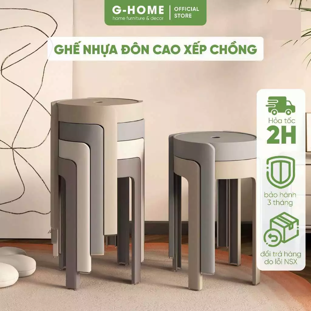 🔥 Ghế nhựa cao xếp gọn Ghome ghế đôn tròn Ghế đẩu cao chắc chắn sang trọng tiện lợi GHE24M3 đang giảm giá!