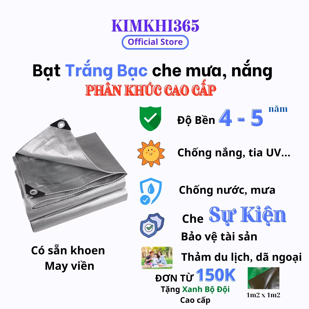 Một sản phẩm chất lượng cao mà chúng tôi muốn giới thiệu đến bạn là Bạt Xám Trắng Che Mưa, Che Nắng Hàn Quốc Loại 1 Đóng Khoen May Viền Sẵn (200gram/m2). Sản phẩm này được làm từ chất liệu polyester cao cấp, có tính bền cao và chống nước tốt.