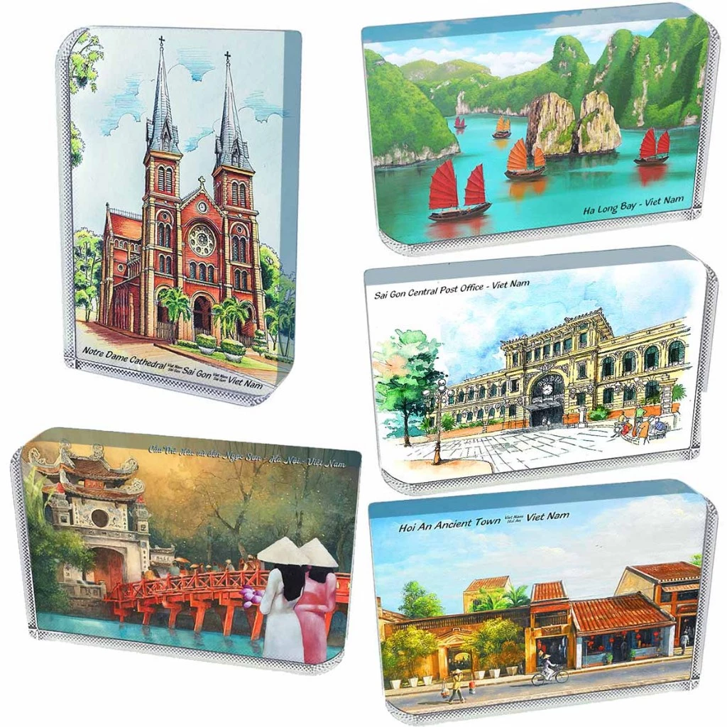 🔥 Thủy tinh pha lê nguyên khối 8x6cm dụng cụ chặn giấy, quà lưu niệm trang trí in tranh vẽ danh lam thắng cảnh Việt Nam đang giảm giá!