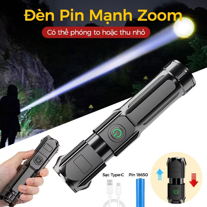 🔥 Đèn pin Led cầm tay siêu sáng có Zoom xa gần pin trâu chống nước đèn pin sạc cầm tay 3 chế độ chiếu sáng đang giảm giá!