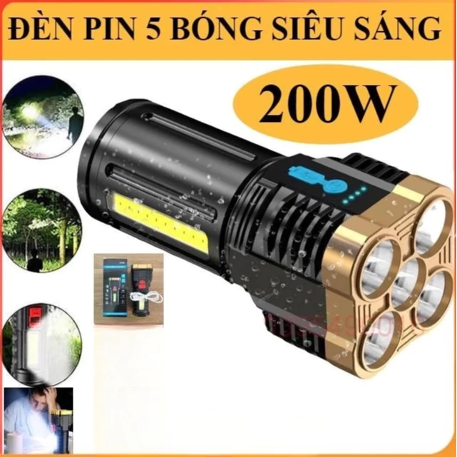 🔥 Đèn Pin Siêu Sáng Cầm Tay 5 Bóng Chắc Chắn 5 Chế Độ Sáng Tiện Dụng đang giảm giá!