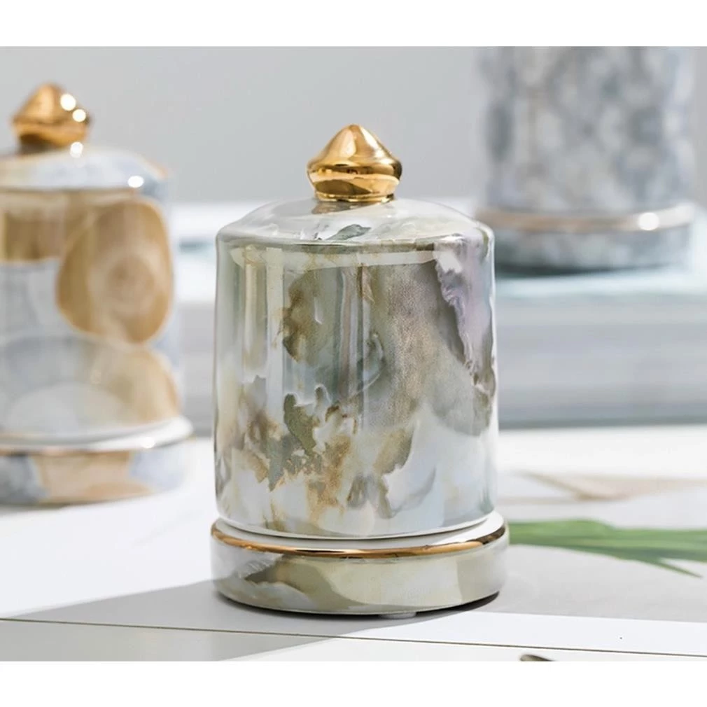 Một trong những lựa chọn đáng cân nhắc là Lọ đựng tăm bằng sứ xương cao cấp vân đá tự nhiên sang trọng. Sản phẩm này không chỉ đáp ứng các tiêu chí về kích thước, chất liệu và thiết kế mà còn mang lại sự sang trọng cho không gian phòng tắm của bạn.