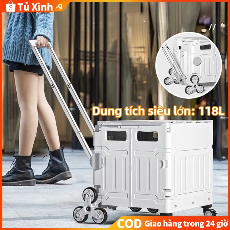 Xe kéo siêu thị 88L/118L gấp gọn – Thiết kế vali, bánh leo cầu thang – Kéo 120kg dễ dàng – Chất liệu chống rỉ