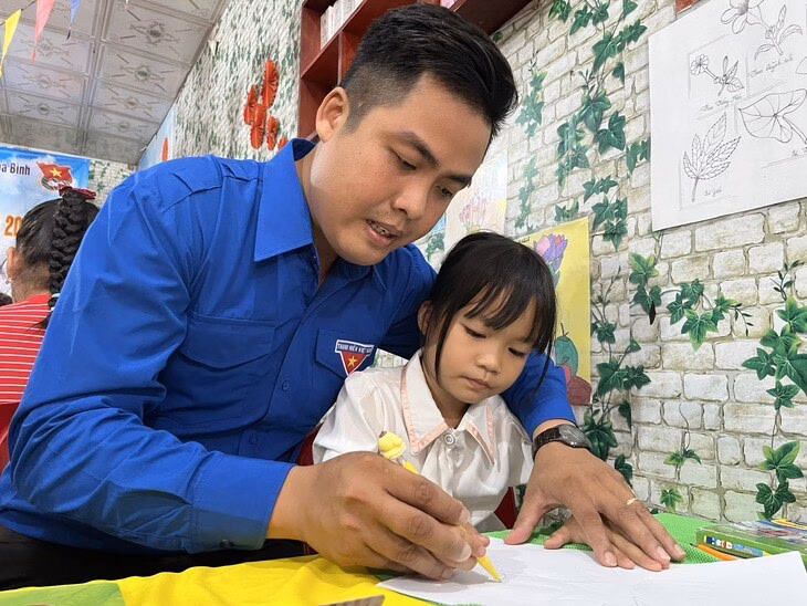 ‘Mô hình giáo dục hè này nhận được sự ủng hộ của địa phương, phụ huynh và quý thầy cô. Chúng tôi có 7 giáo viên tình nguyện, trong đó có cả nghệ sĩ Sơn Đăng từ TP.HCM về hỗ trợ lớp học’, thầy Khánh chia sẻ.
