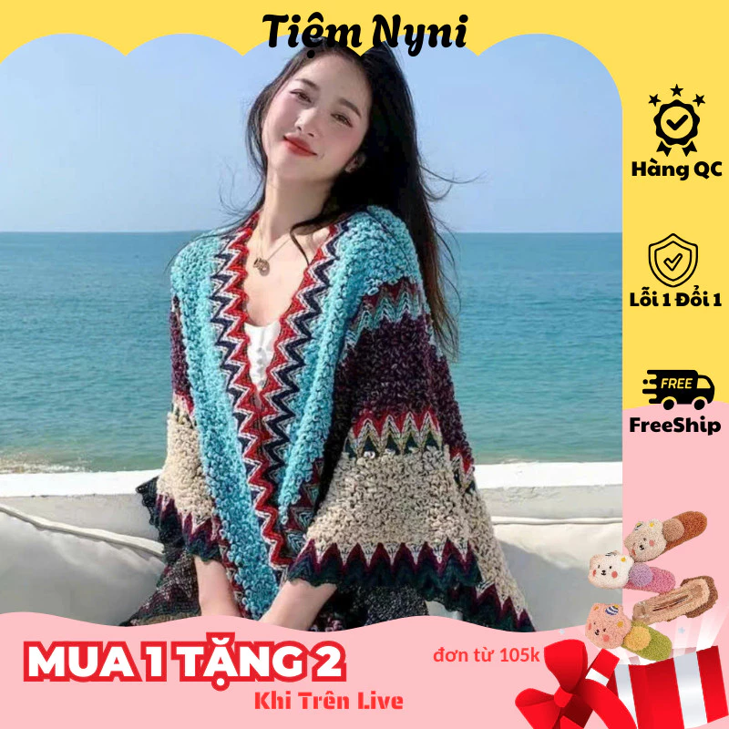 🔥 Áo Choàng Kiêm Khăn Choàng Thổ Cẩm Phong Cách Vintage Đi Du Lịch Đà Lạt SaPa Cực Xinh đang giảm giá!