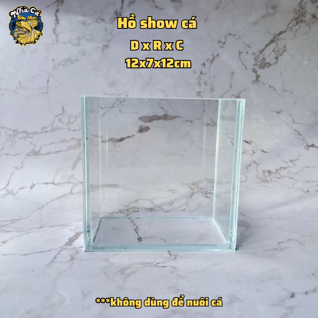 Bể cá mini Hồ show cá mini, kính 5 li siêu trong 12x7x12cm là một lựa chọn tuyệt vời với kích thước 12x7x12cm, phù hợp cho không gian nhỏ.