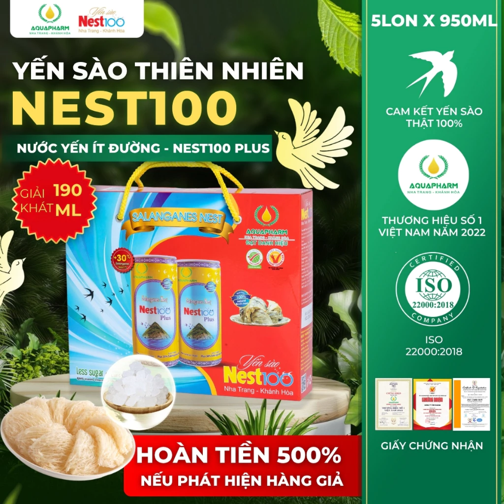 🔥 [Hộp 5 lon]-Nước yến ít đường lon 190ml Nest100 Plus – Aquapharm – Vị ngọt thanh mát đang giảm giá!